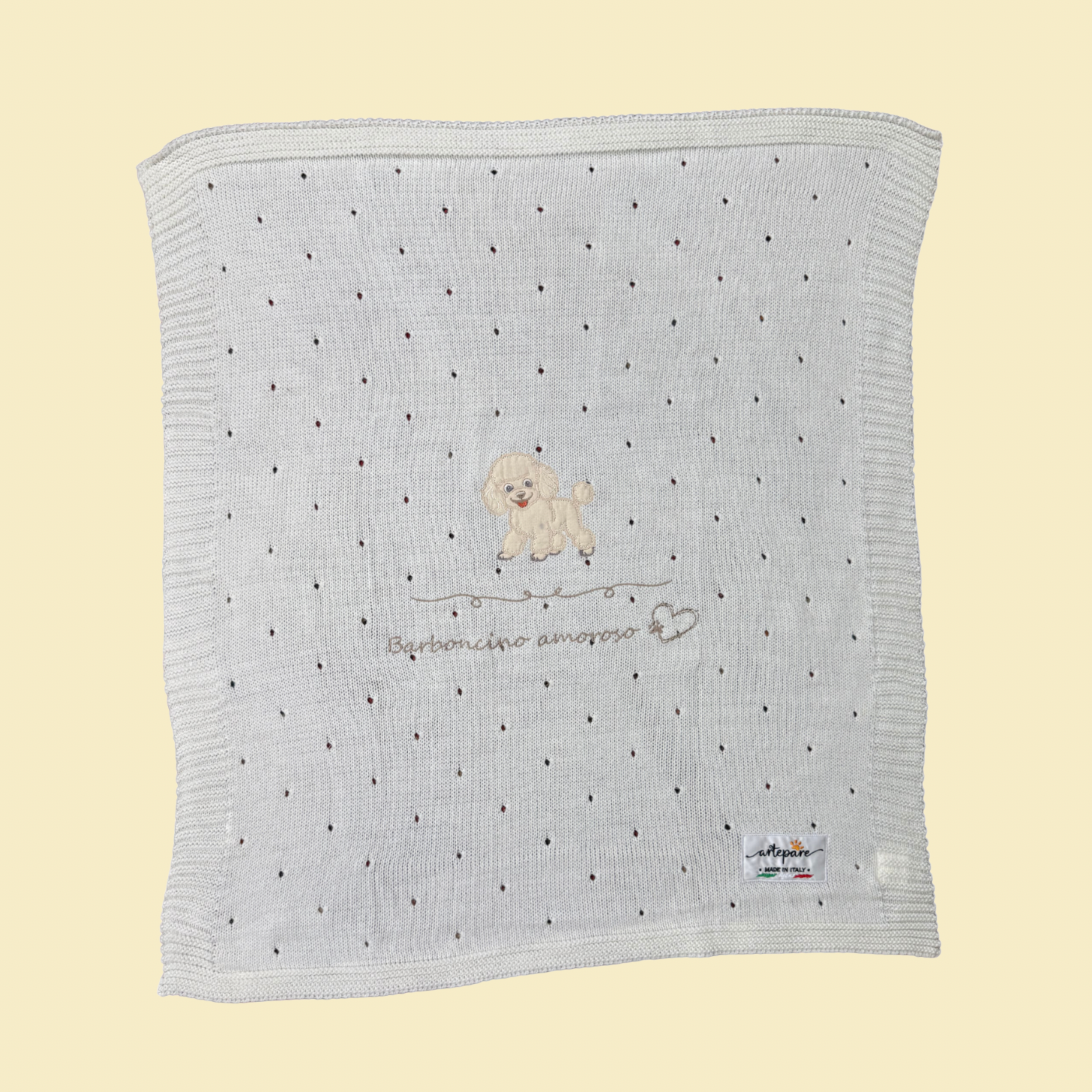 Coperta Filo Lana Panna Con Barboncino Ricamato Miele