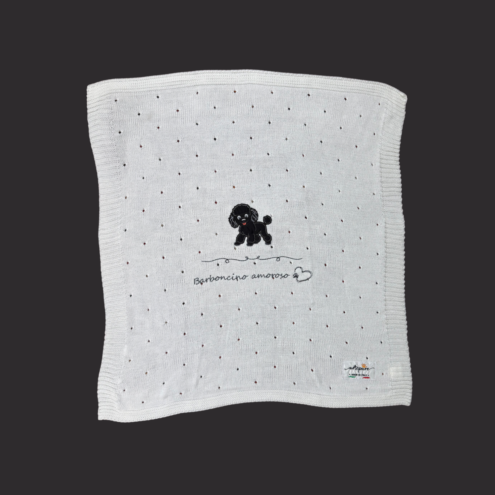 Coperta Filo Lana Panna Con Barboncino Ricamato Nero