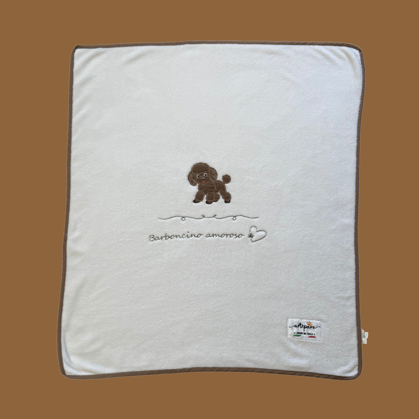 Coperta Pelliccetta Bianco Con Barboncino Ricamato Marrone