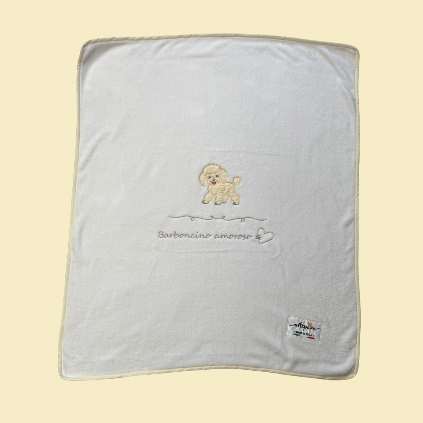 Coperta Pelliccetta Bianco Con Barboncino Ricamato Miele