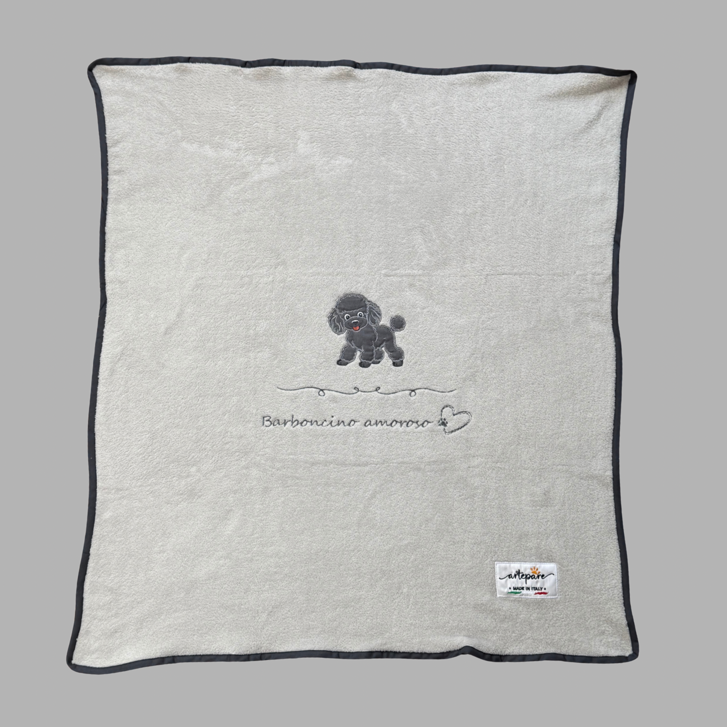 Coperta Pelliccetta Grigio Con Barboncino Ricamato Grigio